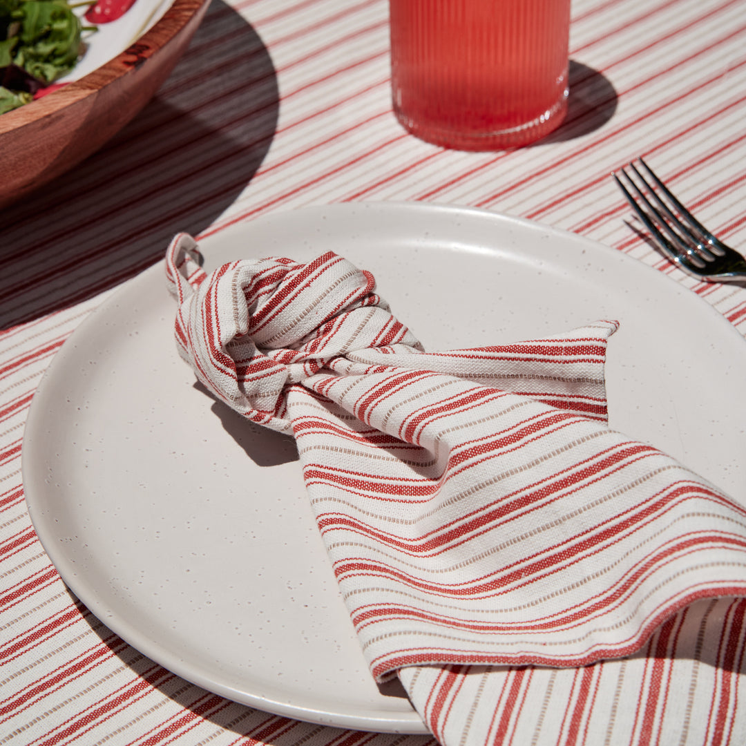 Complete your festive table setting with the Carol Red Stripe Napkins, woven in a classic stripe design featuring tones of red, beige, and white. These beautiful napkins bring warmth, texture, and timeless charm to your dining décor. Made from soft, durable cotton, they’re perfect for both Christmas entertaining and everyday meals. Pair with the matching tablecloth or runner for a coordinated, inviting look.
