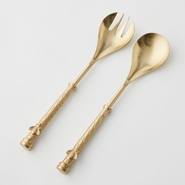 Crafted with care and attention to detail, this elegant salad server set features intricate honeycomb-inspired handles that add a warm, organic touch to any table setting. Made from durable stainless steel, these servers combine form and function — perfect for everyday meals or special occasions alike.