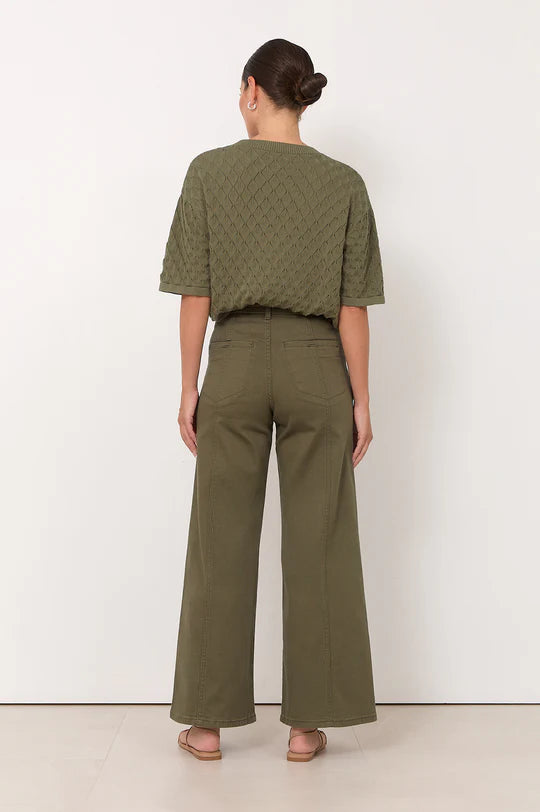 The Adele Wide Leg Jean is designed with a flattering wide leg silhouette and crafted from comfortable stretch denim for ease of movement. Featuring a zip fly with branded button closure, side pockets, back welt pockets and panel detailing, it blends structure with everyday wearability. An optional fabric belt with silver hardware adds a polished finish. True to size, we recommend taking your usual size. Made from 97% Cotton and 3% Elastane.