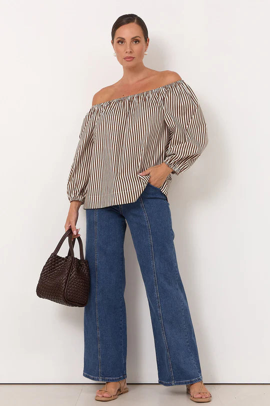 The Adele Wide Leg Jean in Mid Denim is crafted from stretch denim for comfort and ease, featuring a flattering wide leg silhouette, zip fly with button closure, side pockets, back welt pockets, and subtle panel detailing for a modern, polished finish.