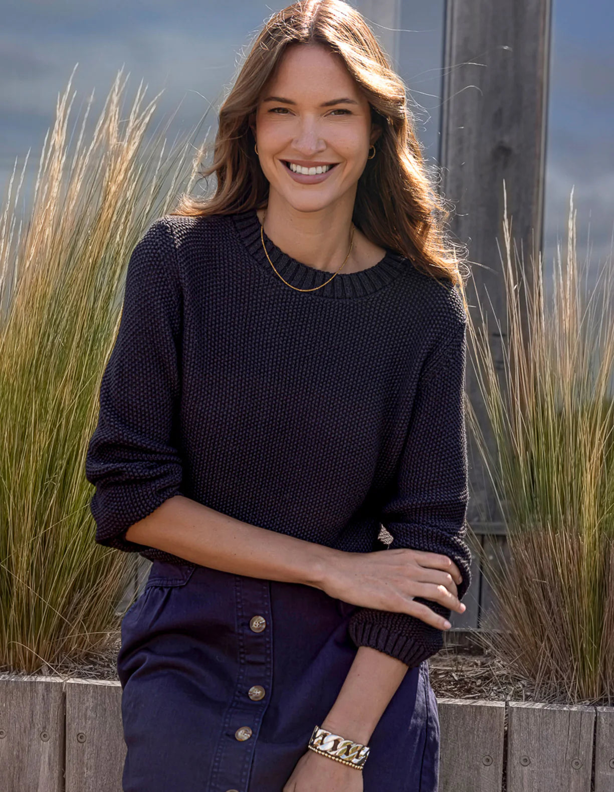 The Blair Long Sleeve Knit is a versatile wardrobe essential designed for effortless everyday wear. Crafted from exclusive Foxwood 100% cotton knitwear, this relaxed-fit style moves easily from workdays to weekends. Featuring a classic round neckline and soft ribbed sleeve cuffs, it’s the perfect throw-on piece you’ll reach for again and again.