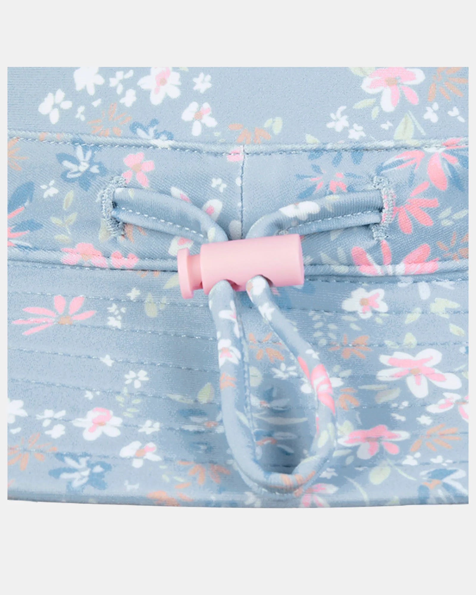 An adjustable head tie allows for a customised fit, while the chin tie with toggle keeps the hat secure during active play. A smart security release clasp offers an added layer of safety for busy days outdoors.