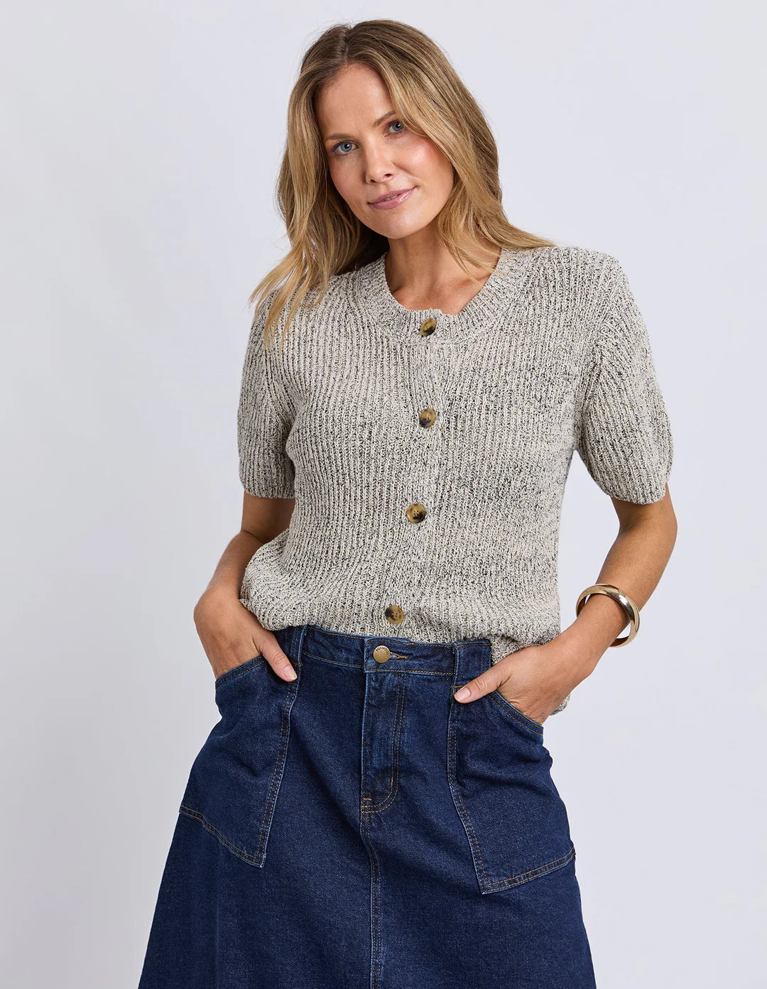 Davina Short Sleeve Knit - Oat Marle