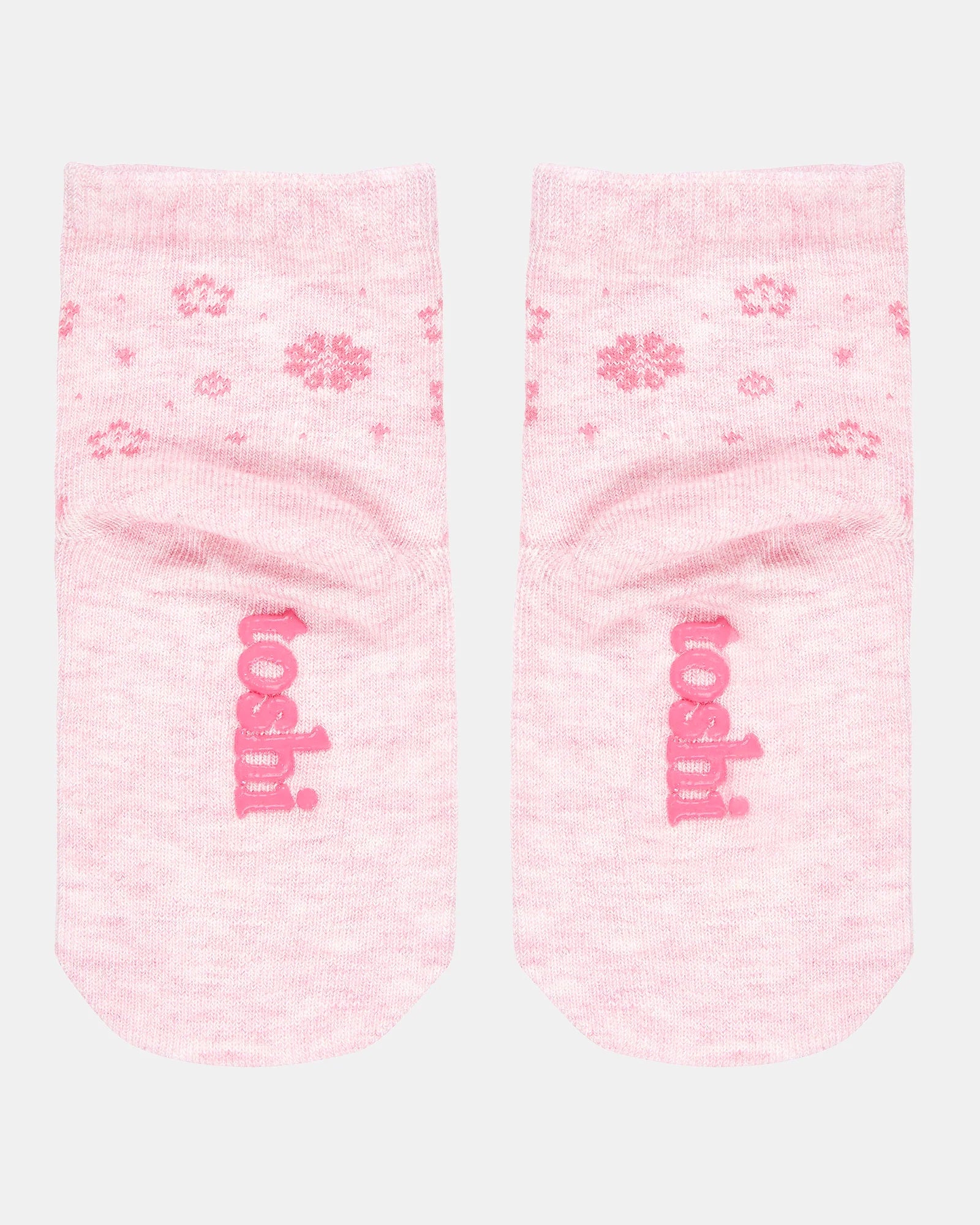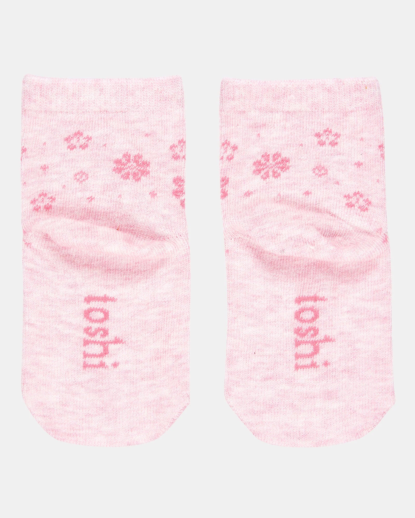 The Fleur design features an artisan jacquard knit in a soft pink marle, showcasing a beautifully textured floral pattern with a handcrafted feel. Designed in Australia, the ankle to mid-calf height adds a sweet and versatile touch to everyday styling.